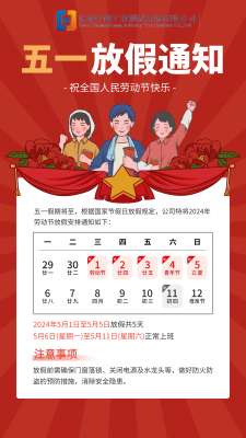 根據國家法定節假日安排及公司實際情況,現將2023年五一勞動節放假事宜通知如下:一、放假時間本次放假時間為2023年4月29日(星期六)至5月3日(星期三)放假調休,共5天。4月23日(星期日)、5月6日(星期六)上班。請各位員工提前做好工作安排,確保放假期間各項工作能夠順利交接。